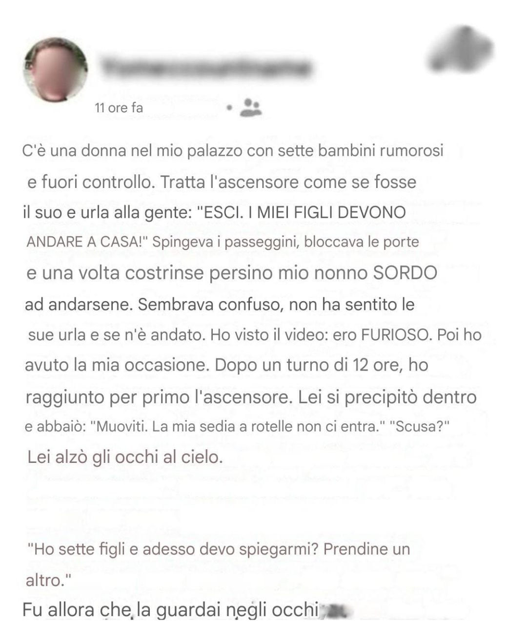 Di solito sono il tipo di persona che non si arrende ed evita i conflitti, ma questa donna del nostro quartiere mi aveva messo alle strette.