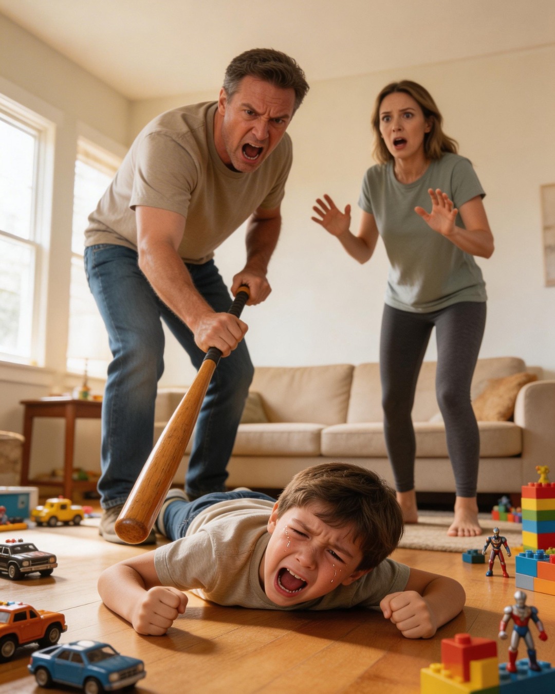 “Sei qui, campione”, disse Derek, ora con voce più dolce. “Va tutto bene, ora sei al sicuro.”