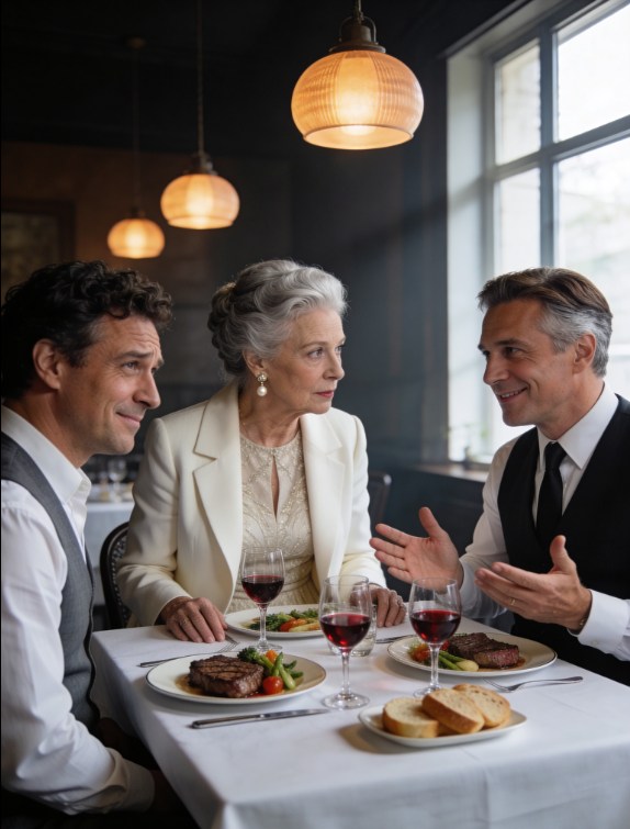 La cena iniziò con una conversazione cortese, il vino fu servito con precisione e i piatti erano disposti come un’opera d’arte, mentre io sorridevo discretamente e parlavo solo quando interpellata direttamente, in modo da poter ascoltare senza attirare l’attenzione.
