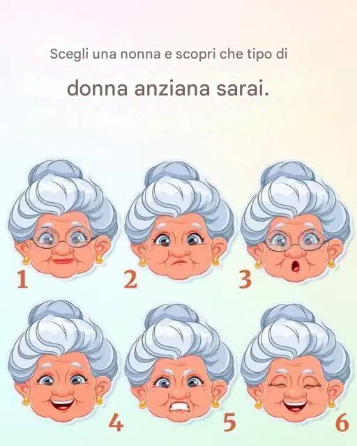 Invecchiare è un viaggio ricco di saggezza, esperienza e, diciamocelo, di ogni sorta di stranezze. Che ci piaccia o no, tutti noi cambiamo insieme, sviluppando tratti diversi che definiscono i nostri anni d’oro. Questa divertente immagine ti invita a scegliere la tua nonna e a scoprire che tipo di donna anziana potresti diventare. L’ultima opzione rappresenta forse una soluzione alternativa a “sé” alternativi? Scopriamolo!
