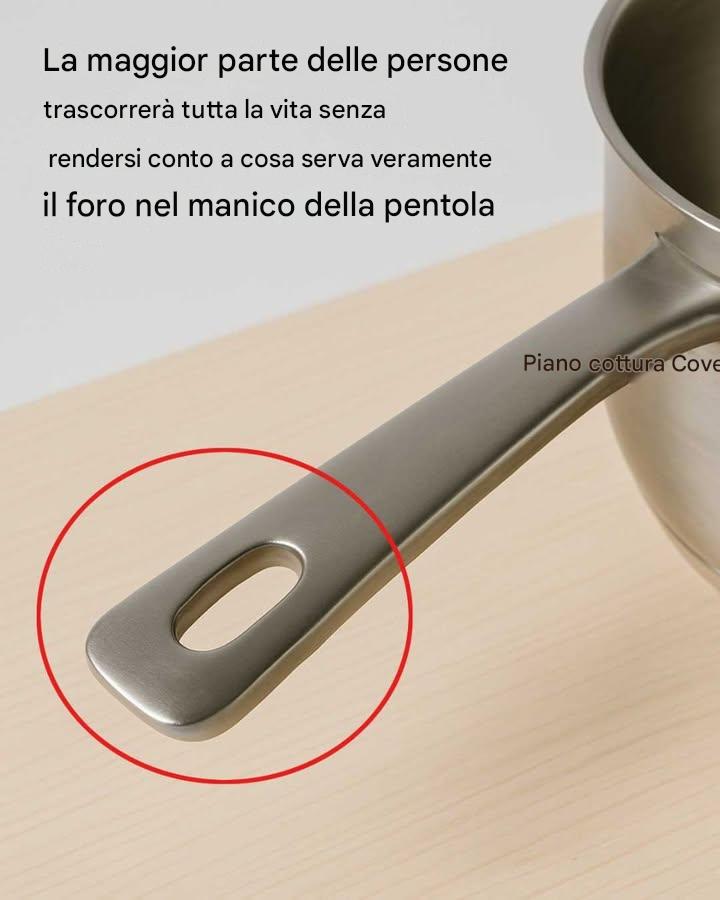 Nel mondo degli utensili da cucina e delle pentole, ogni elemento di design ha una sua funzione, anche se non è immediatamente evidente. Una di queste caratteristiche, che spesso passa inosservata, è il foro nel manico di molte pentole e padelle. A prima vista, questo piccolo e discreto foro potrebbe sembrare un semplice ripensamento o una semplice scelta di design. Tuttavia, nasconde un segreto che molte persone ignorano per tutta la vita. Questo articolo approfondisce il mistero del foro nel manico delle pentole, esplorandone gli usi pratici e sfatando luoghi comuni comuni.